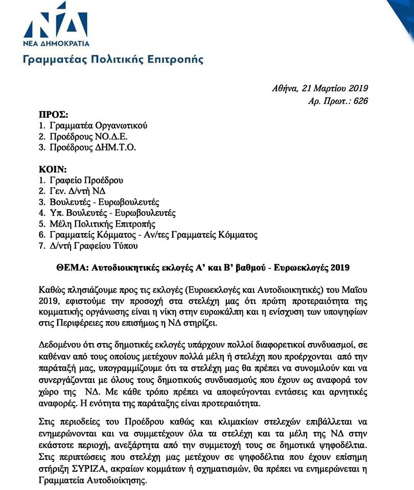 Αναδίπλωση της Νέας Δημοκρατίας σχετικά με τα χρίσματα στους Δήμους και δικαίωση όλων όσων επιμένουν εδώ και καιρό ότι είναι μεγάλο λάθος η παρέμβαση ηγετικών στελεχών υπέρ κάποιων υποψηφίων.