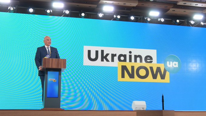 Η Ελλάδα – το είπα πριν, το λέω τώρα, θα το λέω διαρκώς, αυτή είναι η εντολή που έχω από τον Πρωθυπουργό Κυριάκο Μητσοτάκη και είναι η θέση της Ελλάδος πάντοτε – στηρίζει την ανεξαρτησία, την κυριαρχία και την εδαφική ακεραιότητα της Ουκρανίας εντός των διεθνώς αναγνωρισμένων συνόρων της. Αυτό το επαναλαμβάνουμε σταθερά σε όλα τα fora και σε όλους τους Διεθνείς Οργανισμούς στους οποίους συμμετέχουμε. Kαι στην Ευρωπαϊκή Ένωση και στο ΝΑΤΟ και στον ΟΑΣΕ. Και θα συνεχίσουμε να το κάνουμε ανεξαρτήτως κόστους για μας γιατί είναι θέμα αρχής.