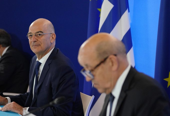 Δήλωση (on camera) Υπουργού Εξωτερικών, Νίκου Δένδια, μετά την ολοκλήρωση της διμερούς συνάντησής του με το Γάλλο ομόλογό του, Jean–Yves Le Drian και του Συμβουλίου Εξωτερικών Υποθέσεων της ΕΕ στο Παρίσι: