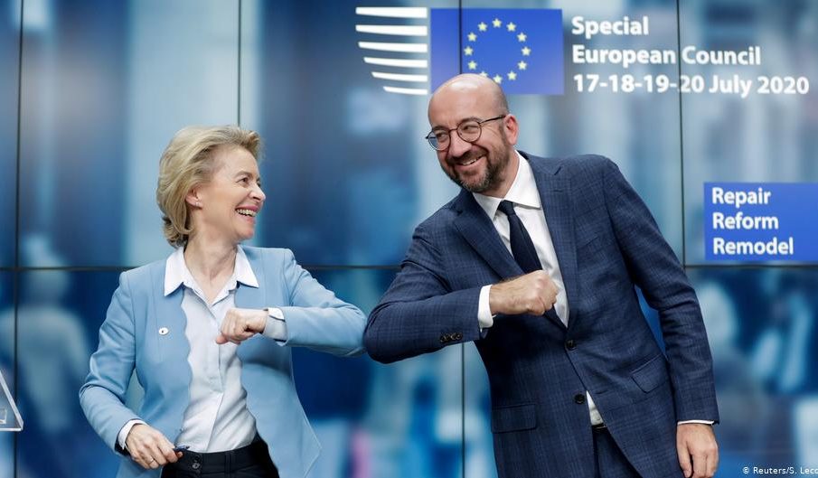 Σε μια από τις δυσκολότερες διαπραγματεύσεις των Ευρωπαίων ηγετών τα τελευταία χρόνια, η Ευρώπη όχι μόνο στάθηκε όρθια εν μέσω μιας μεγάλης οικονομικής κρίσης, αλλά με τις αποφάσεις που ελήφθησαν τα ξημερώματα της Τρίτης δημιουργούνται όλες οι προϋποθέσεις για την αντιμετώπιση των επιπτώσεων της πανδημίας αλλά και την στροφή προς ένα πράσινο οικονομικό μοντέλο.