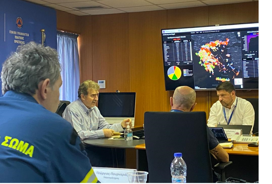 Τέλος, σημειώνεται ότι στη σύσκεψη παραβρέθηκαν ο Γενικός Γραμματέας Πολιτικής Προστασίας Βασίλης Παπαγεωργίου, ο Αναπληρωτής Γενικός Γραμματέας Π.Π. Γιώργος Μάριος Καραγιάννης, ο Αρχηγός Π.Σ. Αντιστράτηγος Στέφανος Κολοκούρης, ο Υπαρχηγός Π.Σ. Αντιστράτηγος Ιάκωβος Κλεφτοσπύρος, o Επιτελάρχης Π.Σ. Αντιστράτηγος Αλέξιος Ράπανος, ο Προϊστάμενος Κλάδου Επιχειρήσεων Υποστράτηγος Γεώργιος Πουρναράς, ο Προϊστάμενος Κλάδου Διοικητικού Χαράλαμπος Χιώνης, ο Διοικητής του Ενιαίου Συντονιστικού Κέντρου Επιχειρήσεων και Διαχειρίσεων Κρίσεων (Ε.Σ.Κ.Ε.ΔΙ.Κ) Υποστράτηγος Σπυρίδων Πέτρου, καθώς και ο Διευθυντής Σχεδιασμού και Αντιμετώπισης εκτάκτων αναγκών της Γ.Γ.Π.Π. Φοίβος Θεοδώρου.