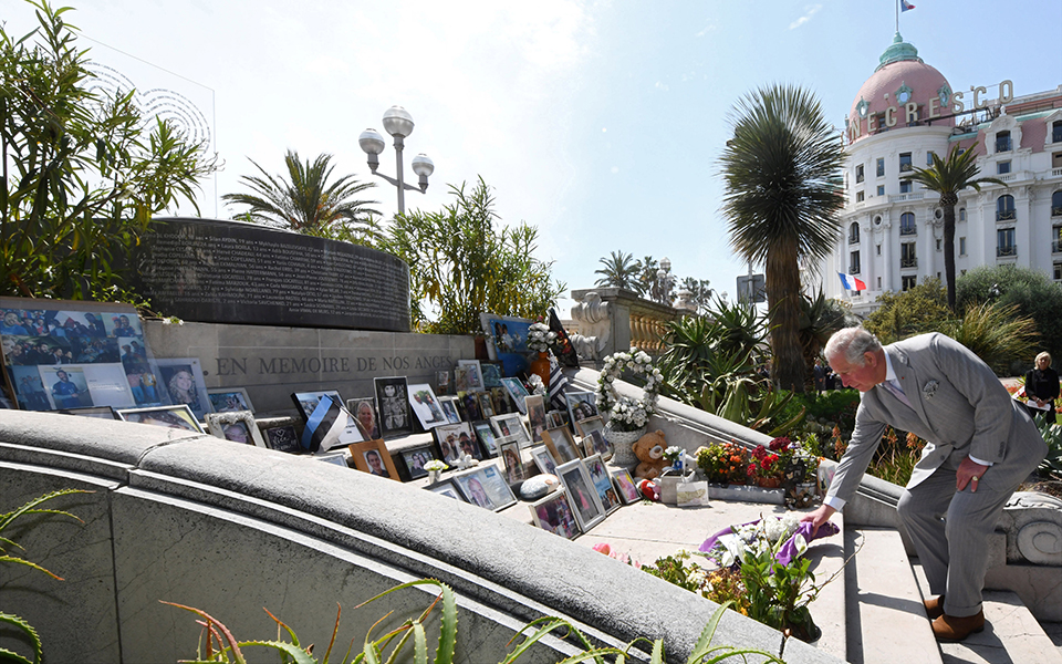 Xθες στη Νίκαια της Γαλλίας, όπου αποτίει φόρο τιμής στα θύματα της τρομοκρατικής επίθεσης με βαν το 2016.
