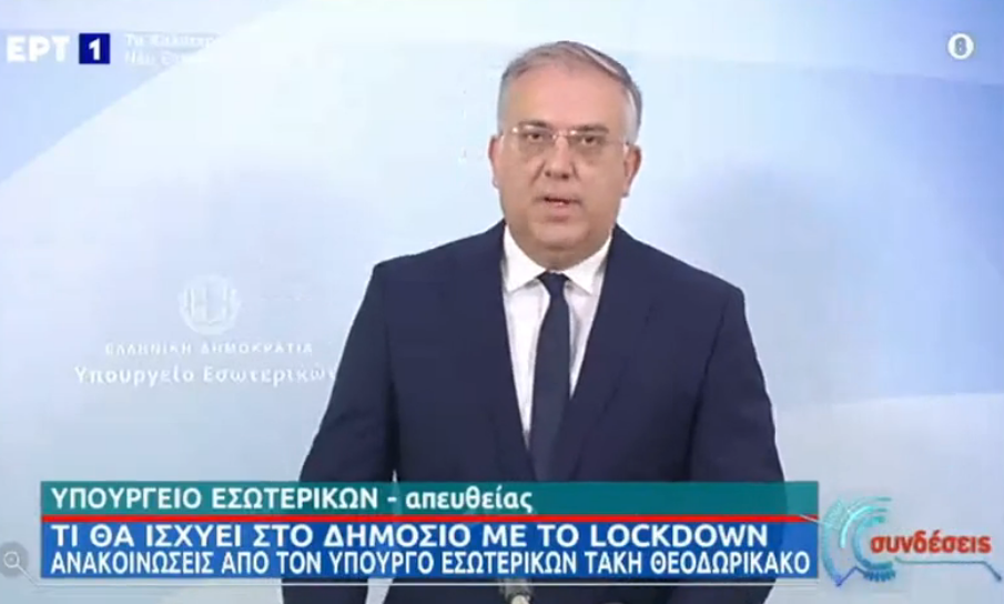 Τις δηλώσεις του υπουργού Εσωτερικών, κ. Τάκη Θεοδωρικάκου, αναφορικά με τα μέτρα πρόληψης κατά της διασποράς του κορωνοϊού, που θα ισχύσουν στο Δημόσιο εν μέσω lockdown, μπορείτε να τις παρακολουθήσετε στις 11:30 π.μ. από την προσωπική σελίδα του Υπουργού στο Facebook (https://www.facebook.com/takistheodorikakos/), καθώς και από την τηλεοπτική συχνότητα της ΕΡΤ1.