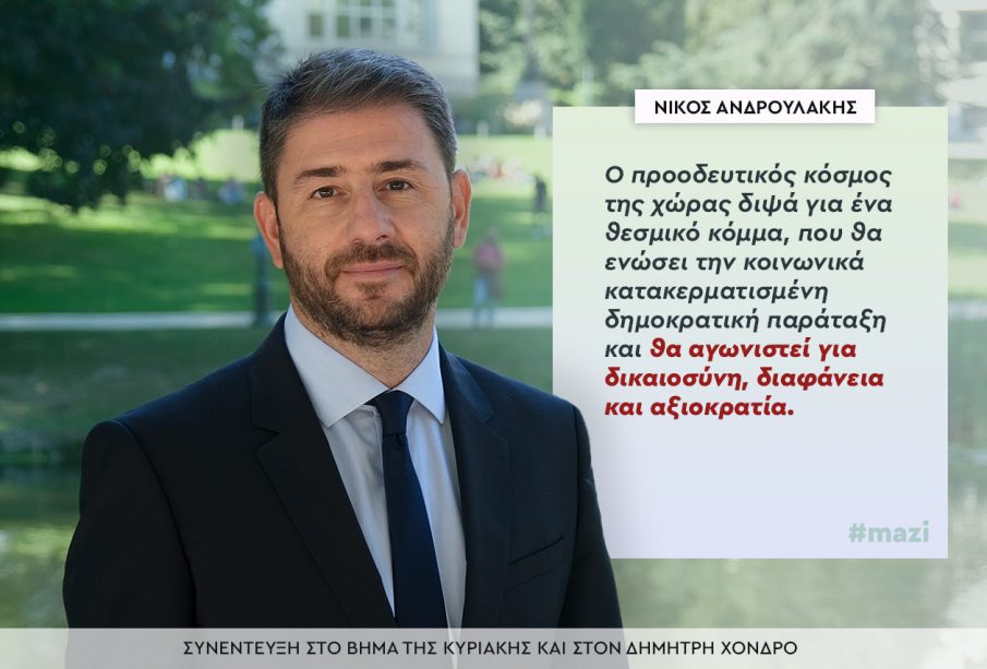 Τόνισε στην συνέντευξη του στο Βήμα της Κυριακής και στον Δημήτρη Χόνδρο, ο Νίκος Ανδρουλάκης.
