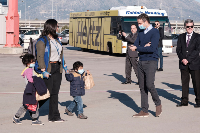 Ο Μητσοτάκης στο αεροδρόμιο κατά την αναχώρηση 50 ασυνόδευτων ανήλικων προσφύγων για τη Γερμανία