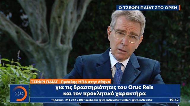 Την πεποίθηση ότι οι ελληνοαμερικανικές σχέσεις δεν θα επηρεασθούν από το αποτέλεσμα της προεδρικής εκλογής εκφράζει μιλώντας στο OPEN και στην Αλεξία Τασούλη,ο Αμερικανός πρέσβης στην Αθήνα Τζέφρι Παϊατ. Χαρακτηρίζει μάλιστα άψογη την εκλογική διαδικασία, απορρίπτοντας ουσιαστικά τις ενστάσεις για την εγκυρότητά της. Ενώ αναφερόμενος στα ελληνοτουρκικά καταδικάζει τις παράνομες δραστηριότητες του Oruc Reis.