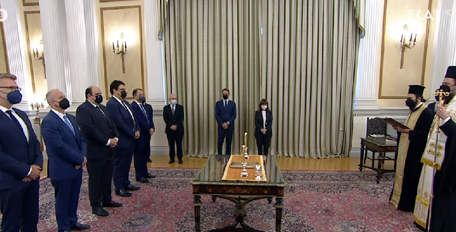 Ενώπιον της Προέδρου της Δημοκρατίας Κατερίνας Σακελλαροπούλου και παρουσία του πρωθυπουργού Κυριάκου Μητσοτάκη, ορκίσθηκαν στο Προεδρικό Μέγαρο οι πέντε υπουργοί και υφυπουργοί – όλοι με θρησκευτικό όρκο.