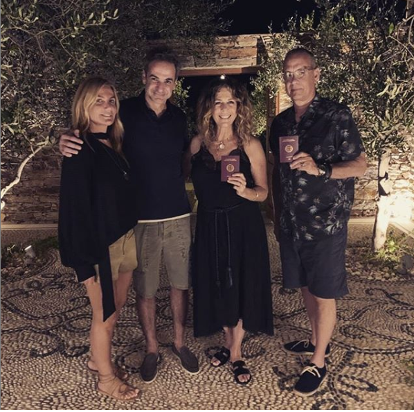 Φωτογραφία με τον Τομ Χανκς και την σύζυγό του, Ρίτα Γουίλσον,ανέβασε στο instagram ο Πρωθυπουργός, Κυριάκος Μητσοτάκης, από την Αντίπαρο όπου βρέθηκε με την σύζυγό του Μαρέβα Γκραμπόφσκι Μητσοτάκη.