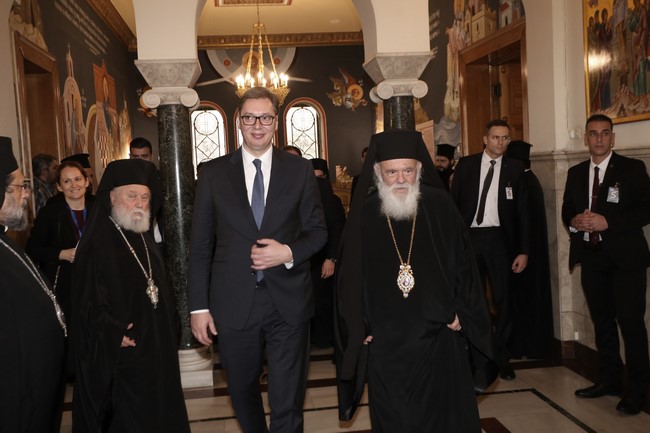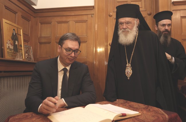 Ο Πρόεδρος της Δημοκρατίας της Σερβίας κ. Αλεξάνταρ Βούτσιτς επισκέφθηκε σήμερα το μεσημέρι τον Αρχιεπίσκοπο Αθηνών και πάσης Ελλάδος κ. Ιερώνυμο.