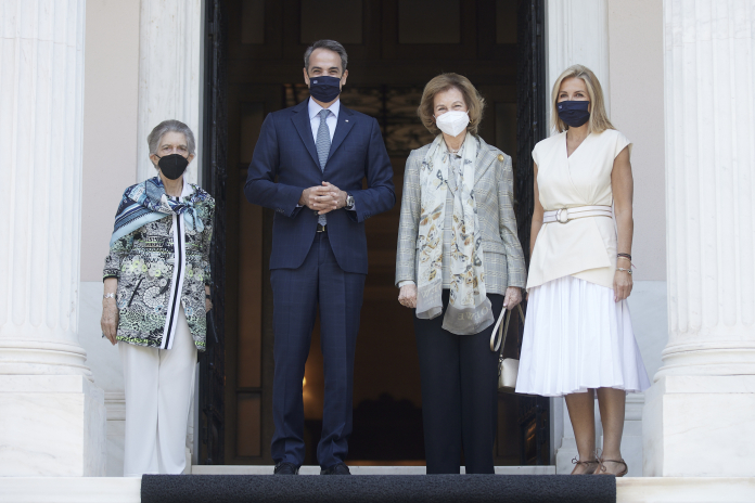 Ο Πρωθυπουργός Κυριάκος Μητσοτάκης και η σύζυγός του Μαρέβα Γκραμπόφσκι – Μητσοτάκη υποδέχθηκαν σήμερα στο Μέγαρο Μαξίμου τη Βασίλισσα της Ισπανίας Σοφία η οποία συνοδευόταν από την αδερφή της Ειρήνη.