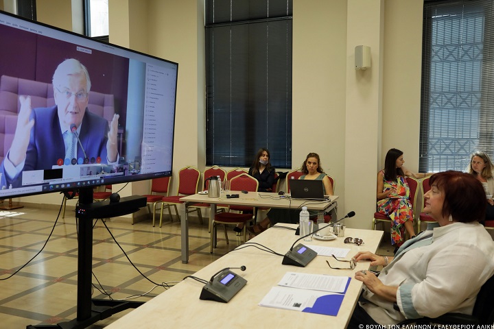 Τηλεδιάσκεψη των Προέδρων των Επιτροπών Ευρωπαϊκών Υποθέσεων των Κοινοβουλίων της Ευρωπαϊκής Ένωσης με τον επικεφαλής της Ειδικής Ομάδας της Ευρωπαϊκής Επιτροπής για τις σχέσεις με το Ηνωμένο Βασίλειο, κ. Michel Barnier, πραγματοποιήθηκε σήμερα, στο πλαίσιο της κροατικής προεδρίας του Συμβουλίου της Ε.Ε., με τη συμμετοχή της κυρίας Μαριέττας Γιαννάκου, μέλους της Επιτροπής Ευρωπαϊκών Υποθέσεων της Βουλής των Ελλήνων.