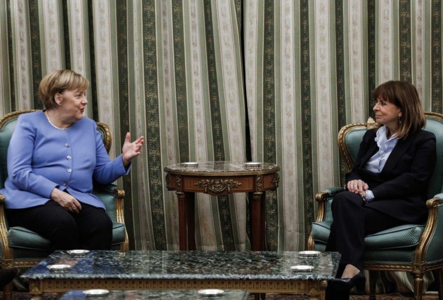 Υποδέχομαι μια σπουδαία πολιτικό που διαμόρφωσε την πολιτικής της Γερμανίας αλλά και της Ευρώπης για δυο δεκαετίες, είπε η Πρόεδρος της Δημοκρατίας υποδεχόμενη την κ. Μέρκελ.