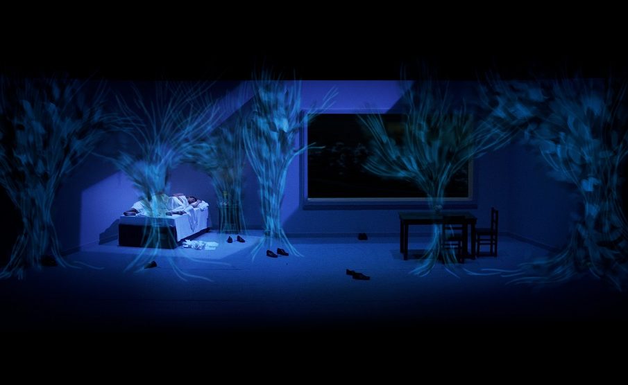 Η σκηνοθεσία αποτολμά μια μείξη νατουραλιστικής παρατήρησης και αισθητικής παραδοξότητας, στο φως της ημέρας και με σκηνικό τον εξωτερικό χώρο μιας παραθαλάσσιας, παρηκμασμένης βίλας. Εκεί, η ηρωίδα επιδίδεται σε «ασκήσεις ενδοσκόπησης» με τη σύμπραξη έξι χορευτών, καλώντας τον θεατή να βάλει σε τάξη τις εικόνες που κατακλύζουν τον λόγο της «με τον τρόπο της φαντασίας».