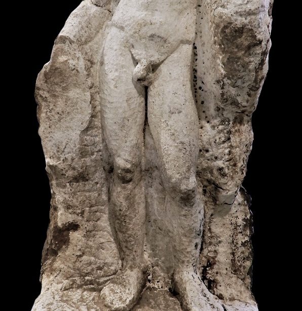 Με ριγμένη στον αριστερό ώμο χλαμύδα να τυλίγεται γύρω από το χέρι του, ο γυμνός νεαρός με το αθλητικό κορμί αναδύεται από τον όγκο του μαρμάρου, ανακαλώντας κλασικά πρότυπα, εικόνες αγαλμάτων που σχετίζονται με τον Απόλλωνα ή τον Ερμή. Πρόκειται για έργο ενός ιδιαίτερα ικανού τεχνίτη που ωστόσο είναι προφανές ότι δεν τελείωσε ποτέ. Για κάποιο λόγο, ο γλύπτης, μολονότι είχε προχωρήσει πολύ την επεξεργασία των κύριων όψεων, φθάνοντας σε σχεδόν τελικό στάδιο, αποφάσισε να εγκαταλείψει την προσπάθεια ημιτελή.