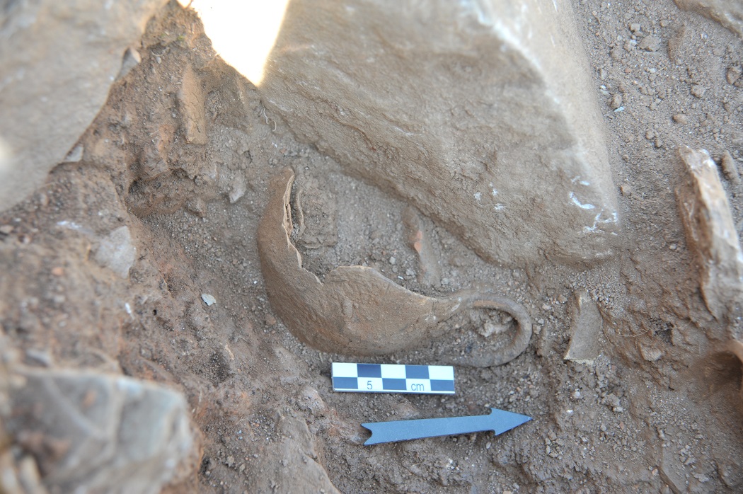 Στην ίδια περίοδο επισκευών δημιουργήθηκαν μεγάλες βεράντες/ αναλήμματα στο Νότιο τμήμα του λόφου, προσκολλημένα στον κεντρικό πυρήνα του κτηρίου, που παρά την αρχαιοκαπηλική καταστροφή της δεκαετίας του ‘60, διέσωσαν σημαντικά αρχιτεκτονικά λείψανα (Φωτ.9), αλλά και φορητά, όπως λύχνους, κυλινδρική βάση του τύπου snake tube, χάλκινο αντικείμενο πιθανώς από ειδώλιο ζώου, αφιερωματικό μαχαιρίδιο κλπ.