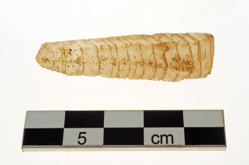 Στην περίοδο των Νέων ανακτόρων (1700-1600 π.Χ.), μετά από έναν μεγάλο σεισμό έγιναν αρκετές αλλαγές, όπως αυτή στη βορειοανατολική είσοδο με τον εξαιρετικά ενδιαφέροντα πρόδομο με τα θρανία (Φωτ.5), που έκλεισε και δημιουργήθηκε μία ράμπα (Φωτ.6) που οδηγούσε προς τα ανατολικά. Στον αρχικό χώρο εισόδου βρέθηκαν, πεσμένα από άνω όροφο μαζί με πλήθος αγγείων, τμήμα ενός ειδωλίου ταύρου (Φωτ.7), στρογγυλά δισκία (Φωτ.8) που όμοιά τους βρέθηκαν διεσπαρμένα σε άλλους χώρους και ένα οστέινο ένθεμα. Όλα αυτά, μαζί με άλλο λίθινο επίμηκες εγχάρακτο πλακίδιο που είχε βρεθεί στον ίδιο χώρο, αποτελούν ενθέσεις σε ΖΑΤΡΙΚΙΟ, όμοιο με αυτό της Κνωσού.