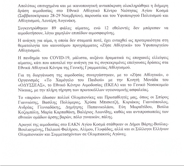 Δράση εθελοντικής αιμοδοσίας του ‘’ΖΗΣΕ ΑΘΛΗΤΙΚΑ’΄ στο ΕΑΚΝ Αγίου Κοσμά