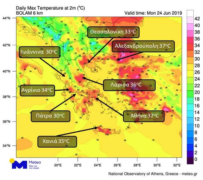 Μικρή πτώση θα παρουσιάσει η θερμοκρασία τη Δευτέρα 24/06. Η μέγιστη τιμής της θα φτάσει τους 36 με 37 βαθμούς ...