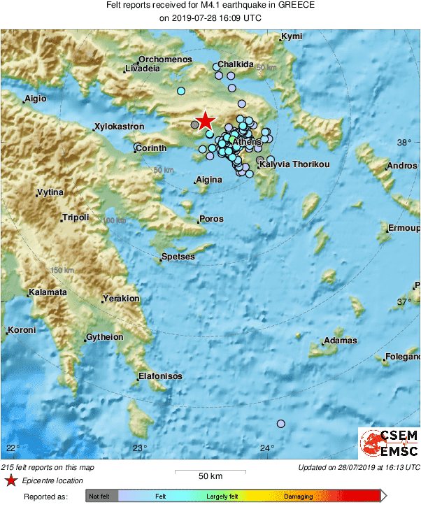 Σεισμική δόνηση μεγέθους 4.2 βαθμών της κλίμακας Ρίχτερ σημειώθηκε στις 19.09 το απόγευμα της Κυριακής 29-07-2019. Το επίκεντρο της δόνησης είναι 25 ...Πολύ υψηλός κίνδυνος πυρκαγιάς για αύριο Δευτέρα 29 Ιουλίου