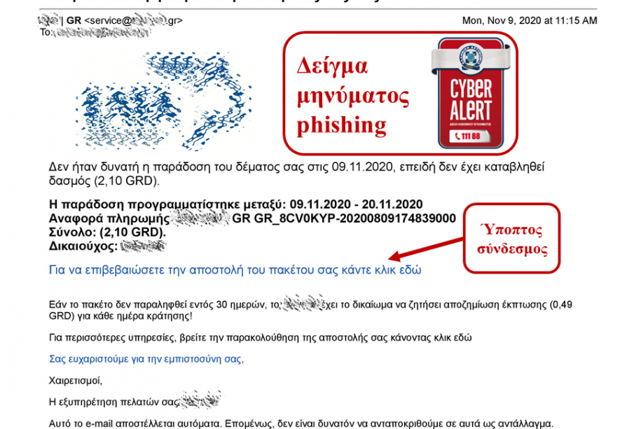 Περισσότερες πληροφορίες για τη μεθοδολογία phishing παρουσιάζονται στον ιστότοπο: https://cyberalert.gr/phising/