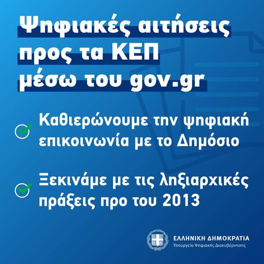 Ψηφιακές αιτήσεις προς τα ΚΕΠ μέσω του gov.gr – αρχή με τα αποσπάσματα ληξιαρχικών πράξεων προ του 2013