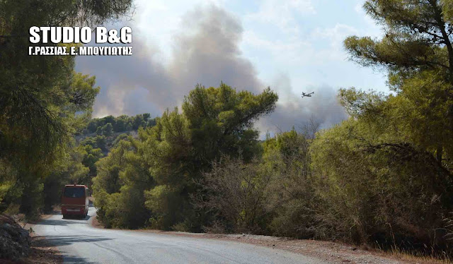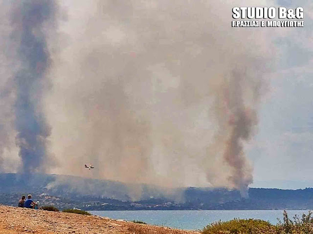 Η πυρκαγιά που εκδηλώθηκε σε δασική έκταση στο Θυνί Ερμιονίδας στην Αργολίδα, ανάμεσα στο Πόρτο Χέλι και στο Κρανίδι βρίσκεται σε πλήρη εξέλιξη.