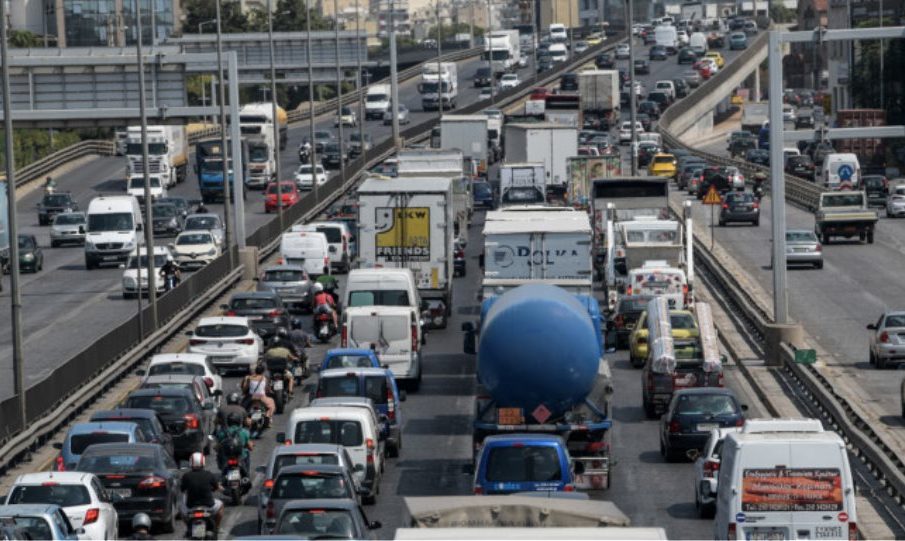 Οι ουρές χιλιομέτρων που έχουν σχηματίσει τα αυτοκίνητα ξεκινούν από το ύψος της Αττικής Οδού, έως και την Λένορμαν.
