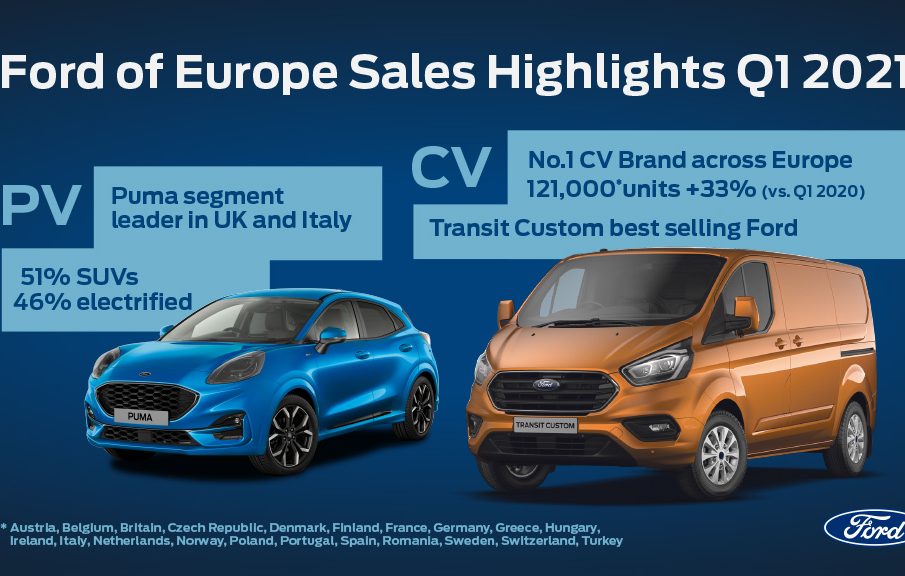 Συγκεκριμένα, κατά τη διάρκεια του πρώτου τριμήνου του έτους, η Ford ήταν η Νο 1 σε πωλήσεις μάρκα στην Ευρώπη στην κατηγορία καταγράφοντας 121.000 πωλήσεις νέων αυτοκινήτων – επίδοση βελτιωμένη κατά 33% σε σχέση με την αντίστοιχη περσινή.