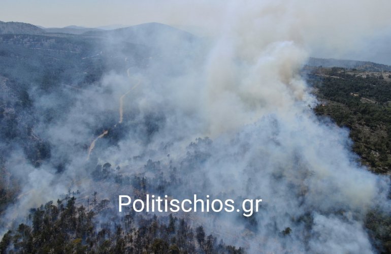 Χίος: Μεγάλη πυρκαγιά καίει δάσος στην περιοχή του Αναβάτου