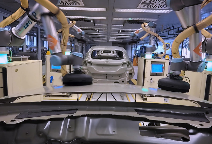 Στην παραγωγή ηχείων και εξοπλισμού ηχοσυστημάτων που φέρουν πιο επίπεδες επιφάνειες, ένα cobot είναι αρκετό. Η εισαγωγή της εν λόγω τεχνολογίας σε μία κινούμενη γραμμή παραγωγής και σε οχήματα με πολλαπλές καμπύλες απαιτούσε μια νέα προσέγγιση.
