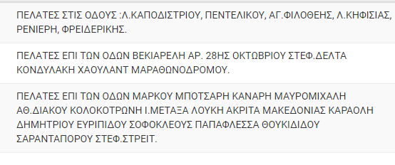 ΠΕΛΑΤΕΣ ΣΤΙΣ ΟΔΟΥΣ :Λ.ΚΑΠΟΔΙΣΤΡΙΟΥ, ΠΕΝΤΕΛΙΚΟΥ, ΑΓ.ΦΙΛΟΘΕΗΣ, Λ.ΚΗΦΙΣΙΑΣ, ΡΕΝΙΕΡΗ, ΦΡΕΙΔΕΡΙΚΗΣ. | 67 | Συντήρηση |
