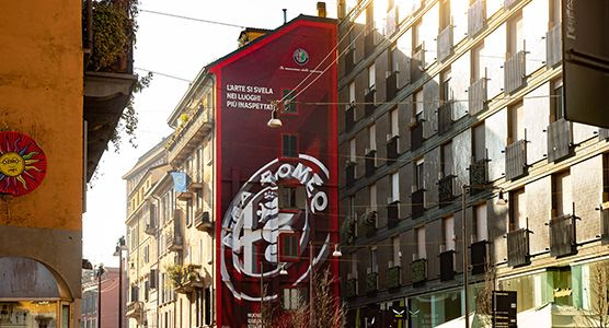 «Η τέχνη αποκαλύπτεται στα πιο απροσδόκητα σημεία». Αυτός είναι ο τίτλος ενός ξεχωριστού έργου τέχνης που δημιουργήθηκε στο κέντρο του Μιλάνο, αντλώντας έμπνευση από το λογότυπο της Alfa Romeo. Αυτή τη φορά ο καμβάς δεν ήταν οι σμιλευμένες επιφάνειες ενό αμαξώματος, αλλά η όψη ενός κτηρίου σε έναν από τους πιο διάσημους δρόμους της πόλης, την Corso Garibaldi. Για τη δημιουργία αυτού του ξεχωριστού έργου συνεργάστηκε μια πολυπληθής ομάδα καλλιτεχνών που μέσα σε 5 ημέρες μετέτρεψε την όψη του κτηρίου σε μια εντυπωσιακή απεικόνιση του, ίσως, πιο διάσημου σήματος της αυτοκινητοβιομηχανίας. Με συνολική επιφάνεια 184μ2 το εντυπωσιακό έργο τέχνης από την Alfa Romeo σηματοδότησε την έναρξη του εμπορικού λανσαρίσματος των νέων Giulia και Stelvio MY2020, οι οποίες παράλληλα με τη δυναμική εμφάνιση και το απολαυστικό οδηγικό ταπεραμέντο προσφέρουν μια πλήρη λίστα προηγμένων συστημάτων υποβοήθησης της οδήγησης.