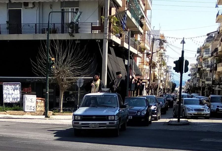 Έκαναν αγιασμό στους δρόμους του Αιγίου για να διώξουν τον κορωνοϊό (VIDEO)