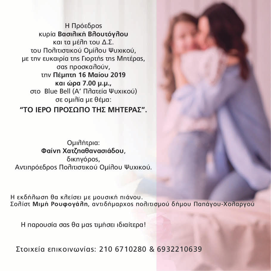 Εκδήλωση για «Το ιερό πρόσωπο της Μητέρας» στο Π.Ψυχικό