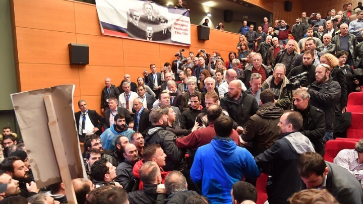 Ένταση στην τελετή έναρξης του 37ου συνεδρίου της ΓΣΕΕ, λόγω κατάληψης του χώρου από το ΠΑΜΕ
