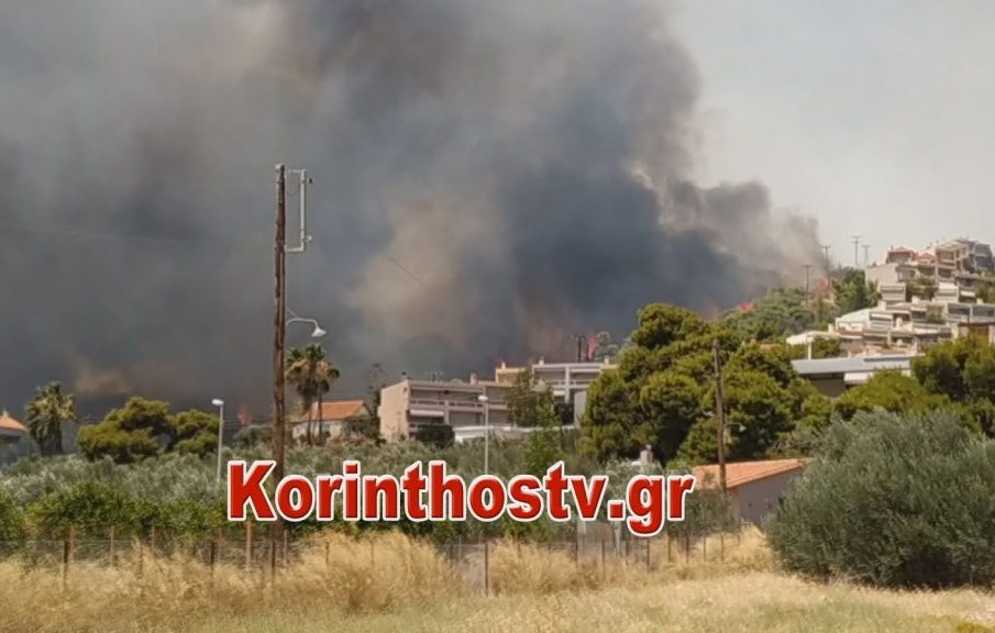Εκτός ελέγχου η φωτιά στις Κεχριές Κορινθίας. Η πυρκαγιά είναι σε εξέλιξη, με πολλές διάσπαρτες ενεργές εστίες.