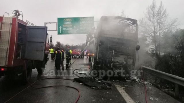 Φωτιά σε λεωφορείο στην Ε.Ο. Αθηνών-Λαμίας στο ύψος του Μαρτίνου
