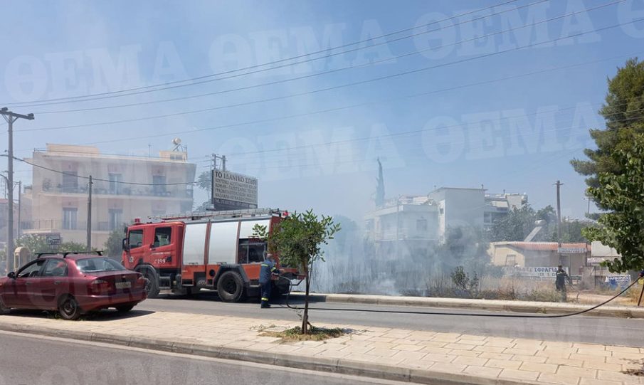 Κοντά στη φωτιά υπάρχουν σπίτια, εκ των οποίων ένα εγκαταλελειμμένο, όπως και οικόπεδα με ξερά χόρτα.