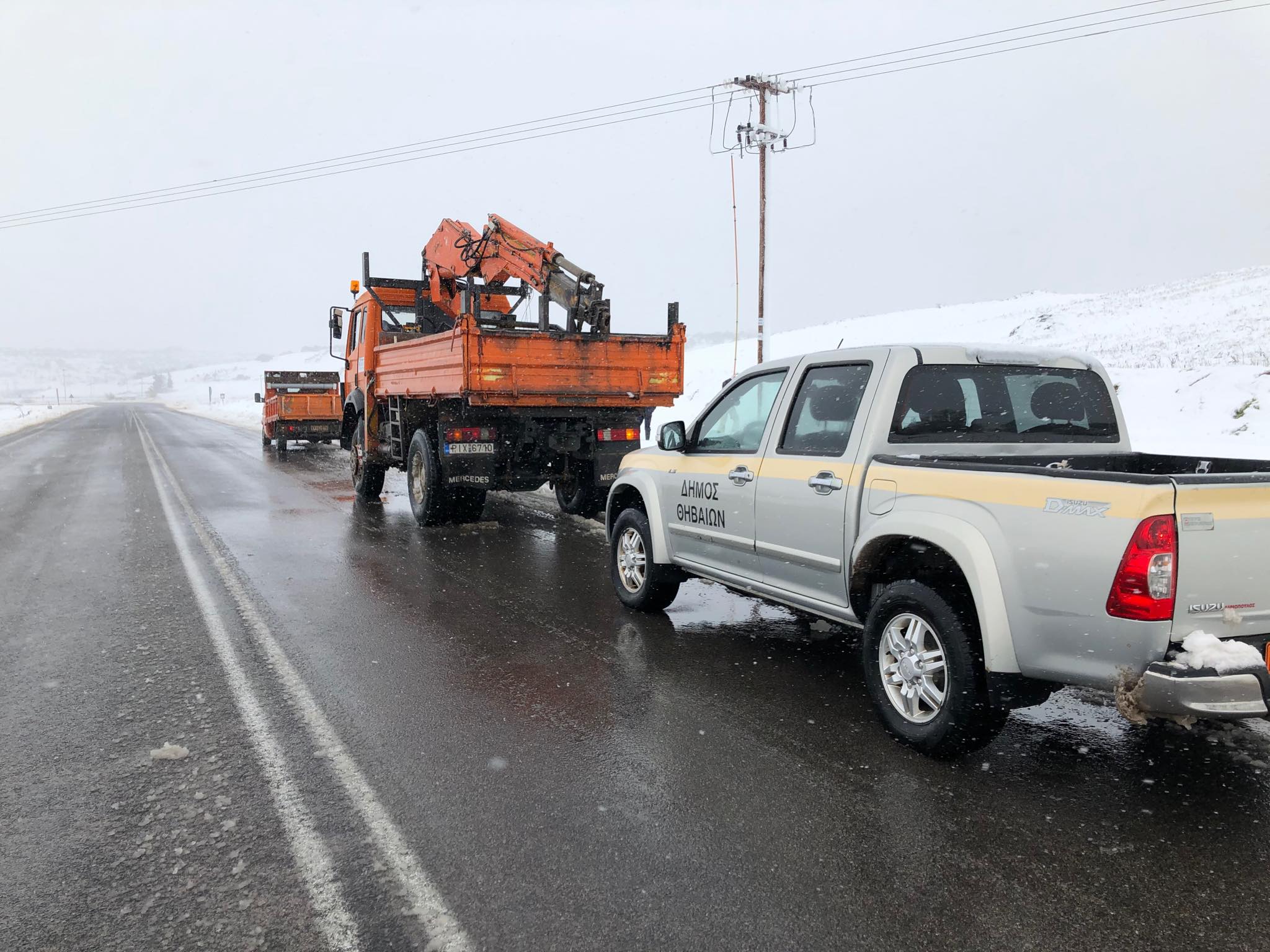 Μηχανήματα αποχιονισμού και αλατιέρες του Δήμου και της Περιφέρειας επιχειρούσαν διαρκώς καθ’ όλη τη διάρκεια της νύχτας και συνεχίσουν και καταβάλλουν κάθε δυνατή προσπάθεια για να κρατηθούν τα οδικά δίκτυα ανοιχτά, ωστόσο οι οδηγοί θα πρέπει να είναι ιδιαίτερα προσεκτικοί και να μην προβαίνουν σε άσκοπες μετακινήσεις και αν απαιτείται να μετακινούνται μόνο αφού έχουν φορέσει στα οχήματά τους αντιολισθητικές αλυσίδες, καθώς τα έντονα φαινόμενα είναι σε εξέλιξη και οι χιονοπτώσεις έχουν διάρκεια και ένταση στις ανωτέρω περιοχές, καθώς και στο περιφερειακό οδικό δίκτυο της Δ.Ε. Θίσβης.