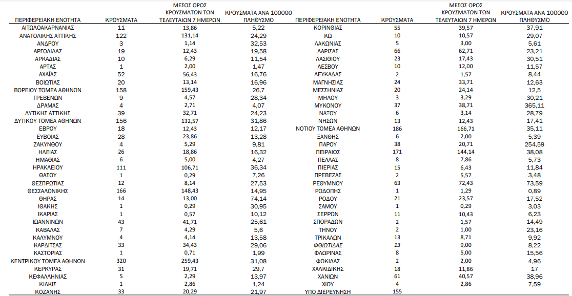 H γεωγραφική κατανομή των 2.562 κρουσμάτων.1.165 στην Αττική(ΠΙΝΑΚΑΣ)