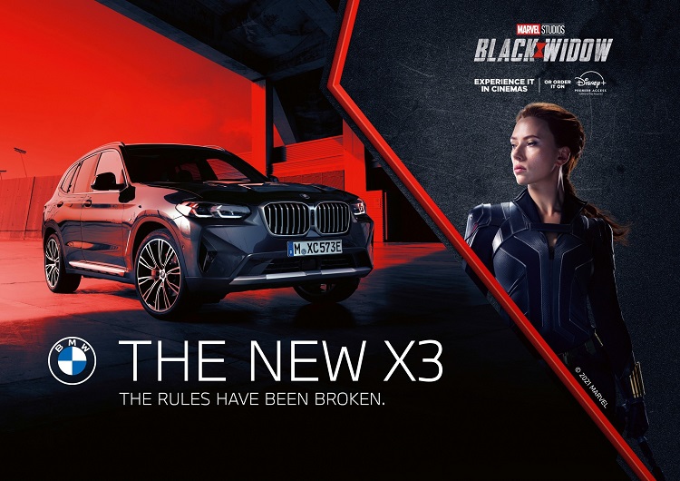 Η BMW και τα Marvel Studios συνεργάζονται για πρώτη φορά στην ταινία “Black Widow,” που πρόκειται να κυκλοφορήσει στις 8 Ιουλίου. Το γεμάτο δράση κατασκοπευτικό θρίλερ του MCU (Marvel Cinematic Universe) είναι η τέλεια κινηματογραφική ταινία για την ανάδειξη της BMW X3. Στη δράση συμμετέχει και η πρώτη BMW Σειρά 2 Gran Coupé. Αποκλειστικά πλάνα από τα γυρίσματα ήδη προβάλλονται μέσω του καναλιού της μάρκας BMW στο YouTube .