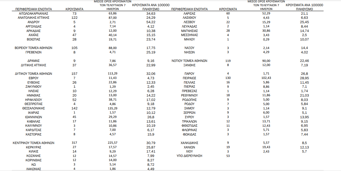 Η γεωγραφική κατανομή 1.918 κρουσμάτων. 990 στην Αττική(ΠΙΝΑΚΑΣ)