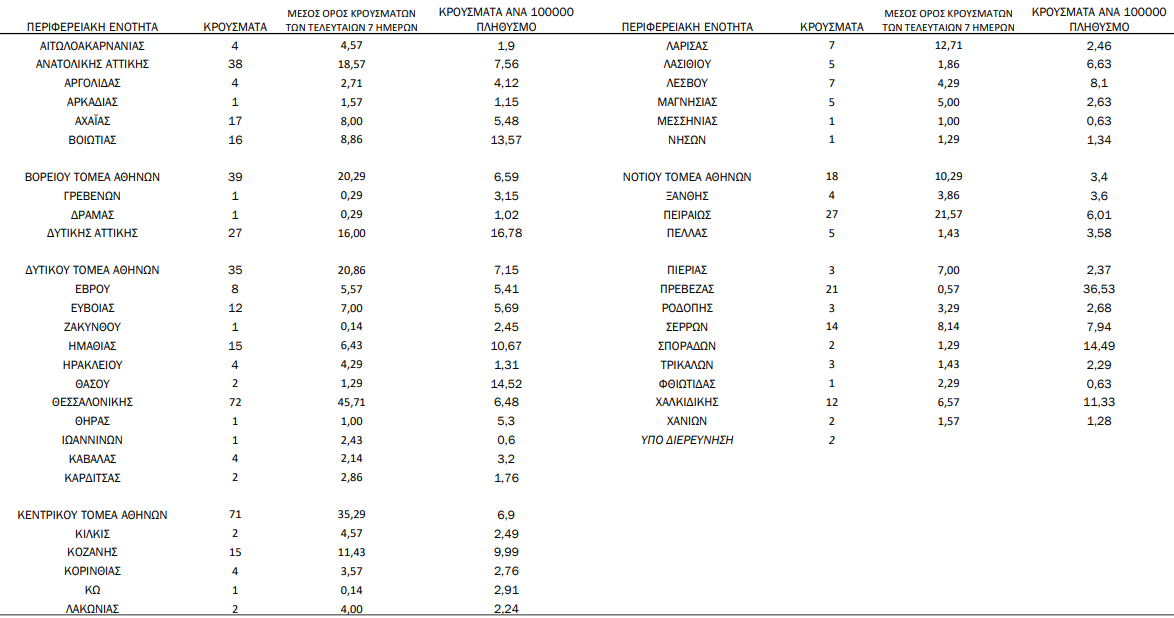 Η γεωγραφική κατανομή 566 των κρουσμάτων.256 στην Αττική,72 στη Θεσ/νίκη