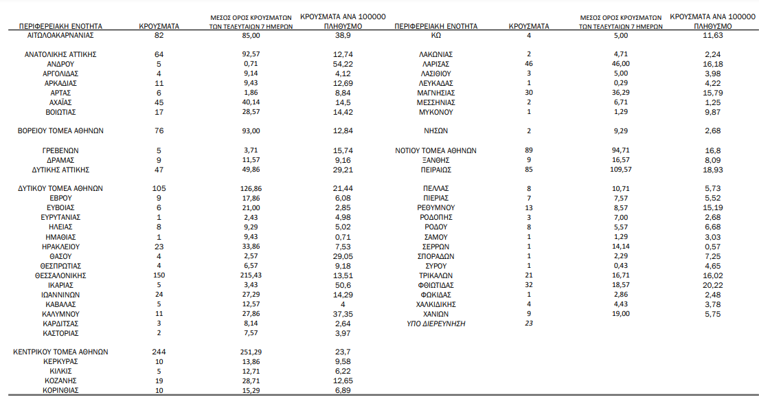Η γεωγραφική κατανομή των 1.428 κρουσμάτων. 712 στην Αττική(ΠΙΝΑΚΑΣ)