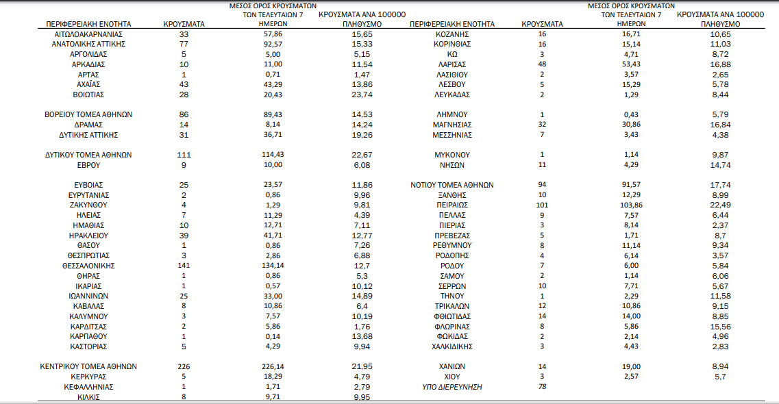 Η γεωγραφική κατανομή των 1.5050 κρουσμάτων.737 στην Αττική (ΠΙΝΑΚΑΣ)