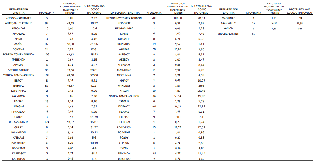 Η γεωγραφική κατανομή των 1.526 κρουσμάτων. 750 στην Αττική (ΠΙΝΑΚΑΣ)