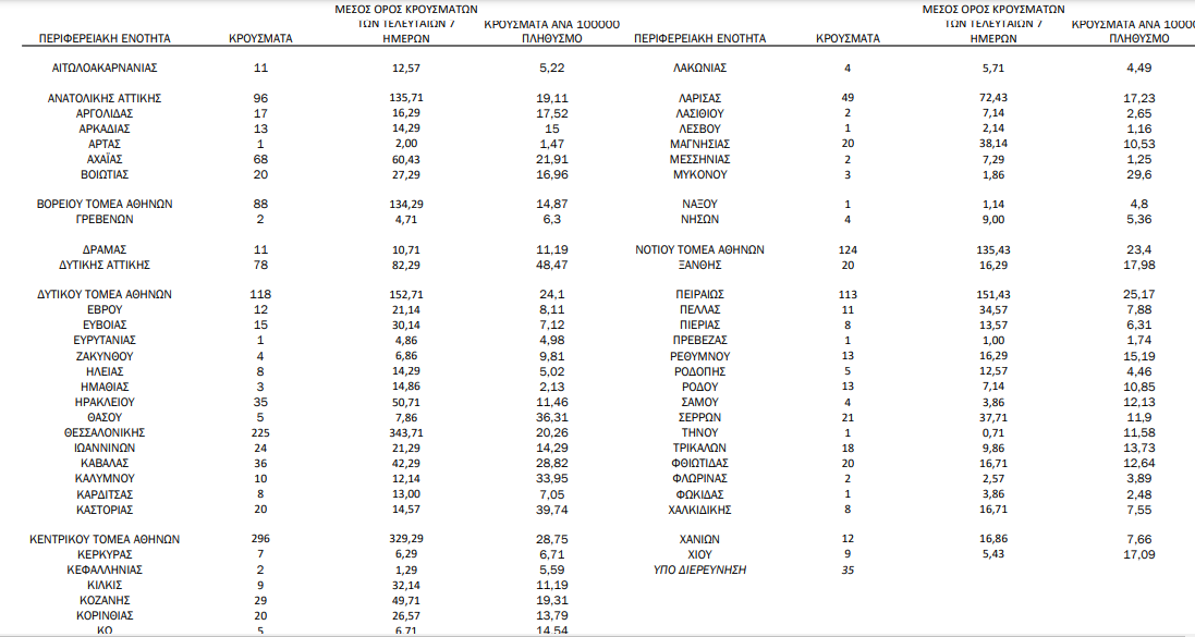 Η γεωγραφική κατανομή των 1.829 κρουσμάτων. 917 στην Αττική(ΠΙΝΑΚΑΣ)