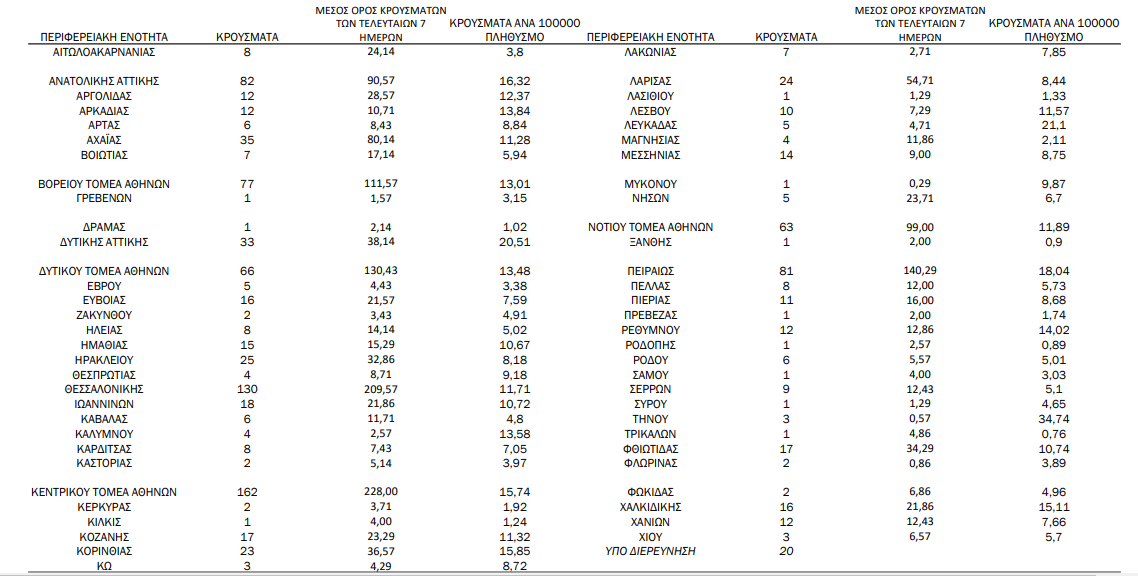 Home›Ελλαδα›Η γεωγραφική κατανομή των 1142 κρουσμάτων.569 στην Αττική