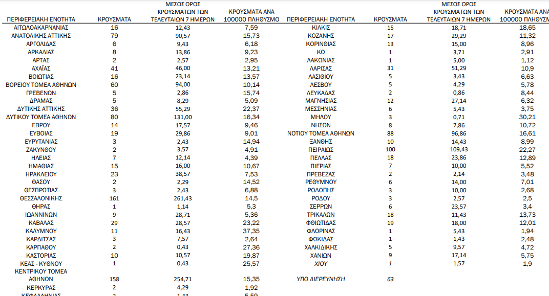 Η γεωγραφική κατανομή των 1317 κρουσμάτων.609 στην Αττική(ΠΙΝΑΚΑΣ)