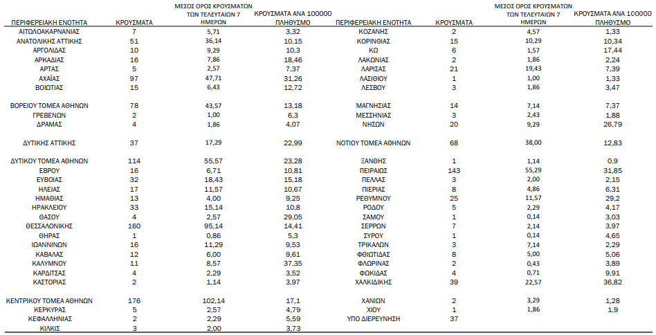 Η γεωγραφική κατανομή των 1400 κρουσμάτων. 667 στην Αττική